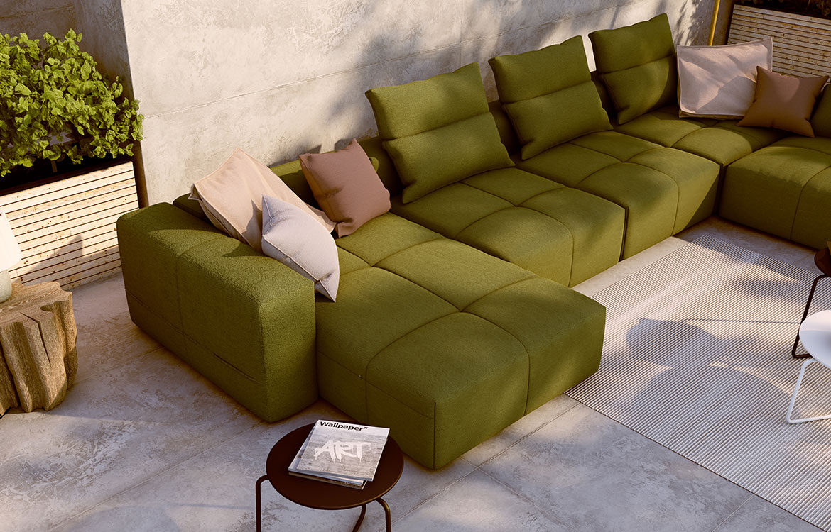 Elemente lahko združite v veliko površino in si tako ustvarite prostor za počitek ali udoben kotiček za razvajanje.