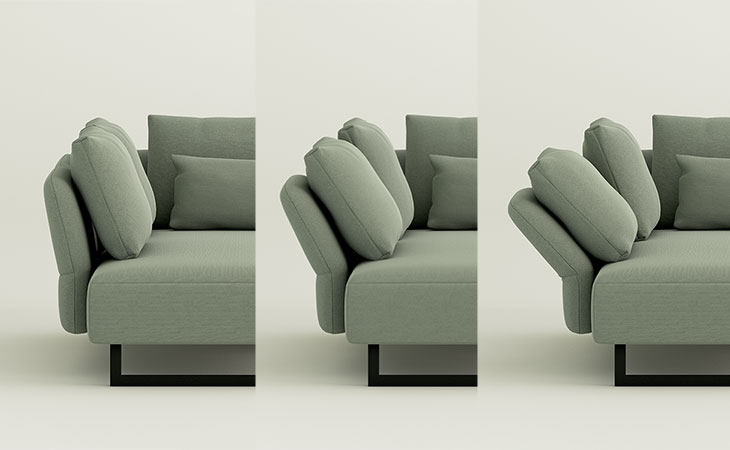 Postavitev kot dvosed in enosed oziroma samostojni element pa je tudi enkratna rešitev za stanovanja. Fotelj s funkcijo podnožja in nagibom hrbtišča za maksimalno udobje.