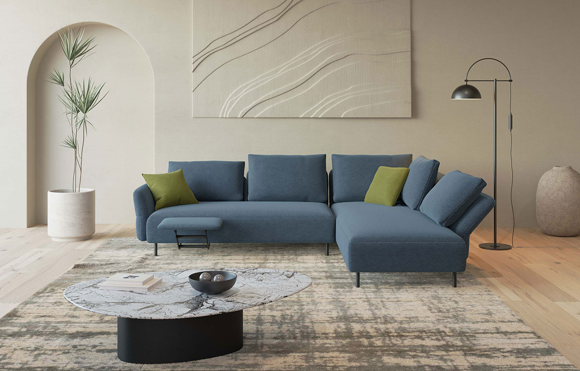 Na poljubno mesto oziroma lokacijo na sedežni garnituri Motion se lahko vgradi motorni izvlek opore za noge.