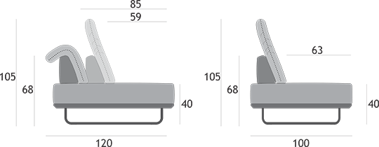 Element ima premik hrbtišča naprej / nazaj (25cm) z nastavljivo blazino.