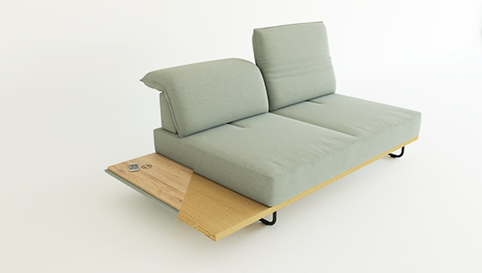 Vsak sedežni element ima lahko na koncu (ali v sredini) vgrajeno odlagalno polico poljubne širine, ki je obdelana s hrastovim furnirjem (ali barvo po želji).