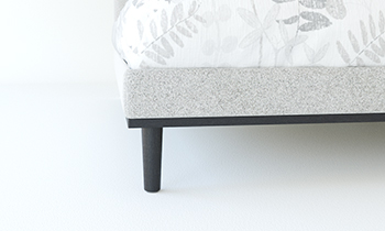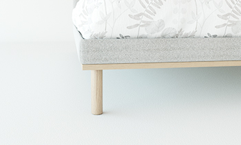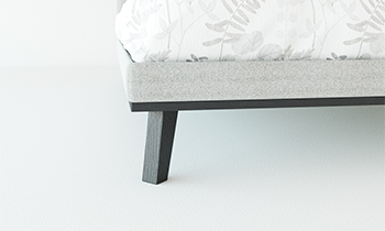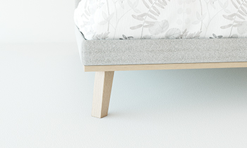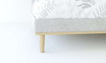 Model postelje Kora ima možnost izbire različnih kombinacij podstavka in nog oz. podnožji.