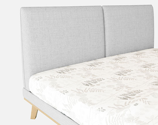 Model postelje Kora ima možnost izbire različnih verzij vzglavne stranice. Stranica je fiksirana na glavni obod postelje.