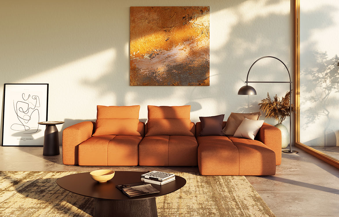 Zaradi nizkega hrbtišča je še posebej primerna za odprte bivalne prostore, za postavitev v sredino bivalnega prostrora in tam kjer želite dinamičen kavč.