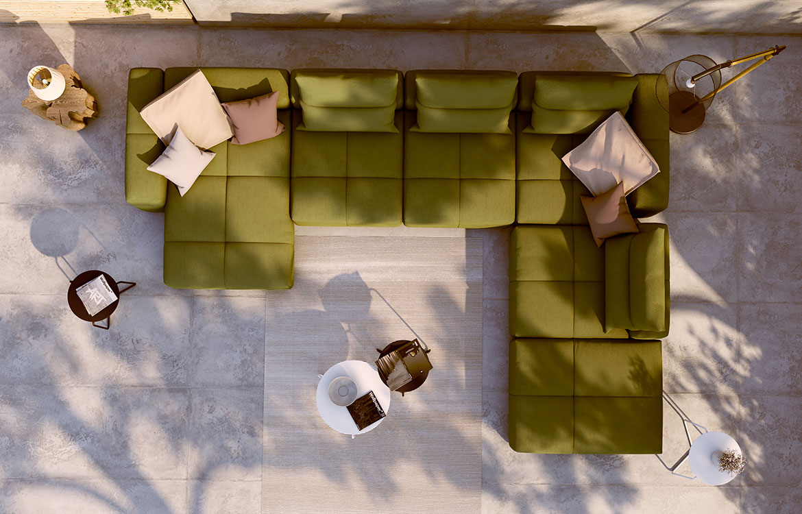 Elemente lahko združite v veliko površino in si tako ustvarite prostor za počitek ali udoben kotiček za razvajanje.